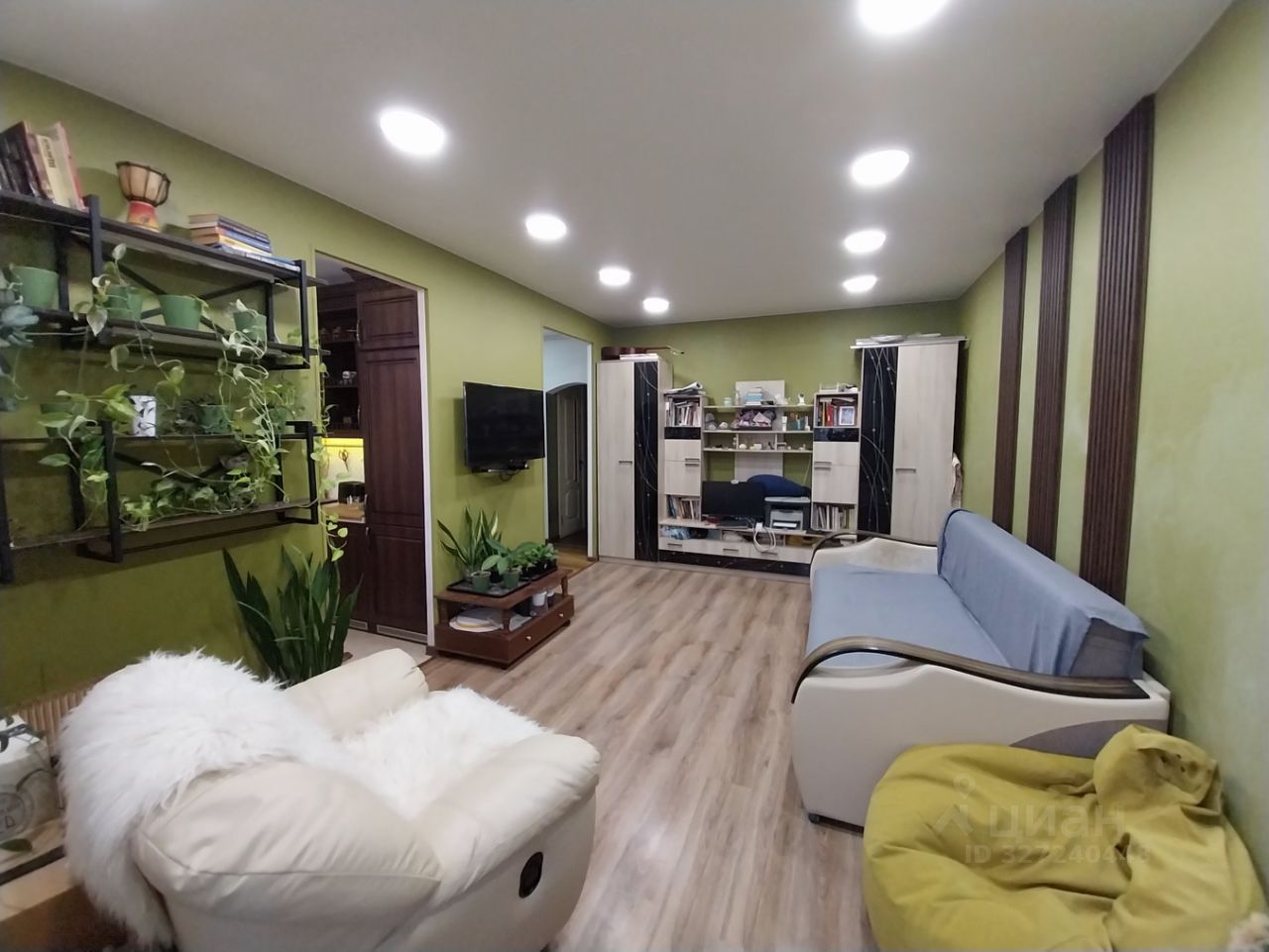 Полы - прoбкoвый лaминат, кварцвиниловый ламинат. Натяжные потолки, стеклопакеты, новые межкомнатные двери, большой встроенный шкаф в прихожей. Есть большая кладовая в средней комнате.