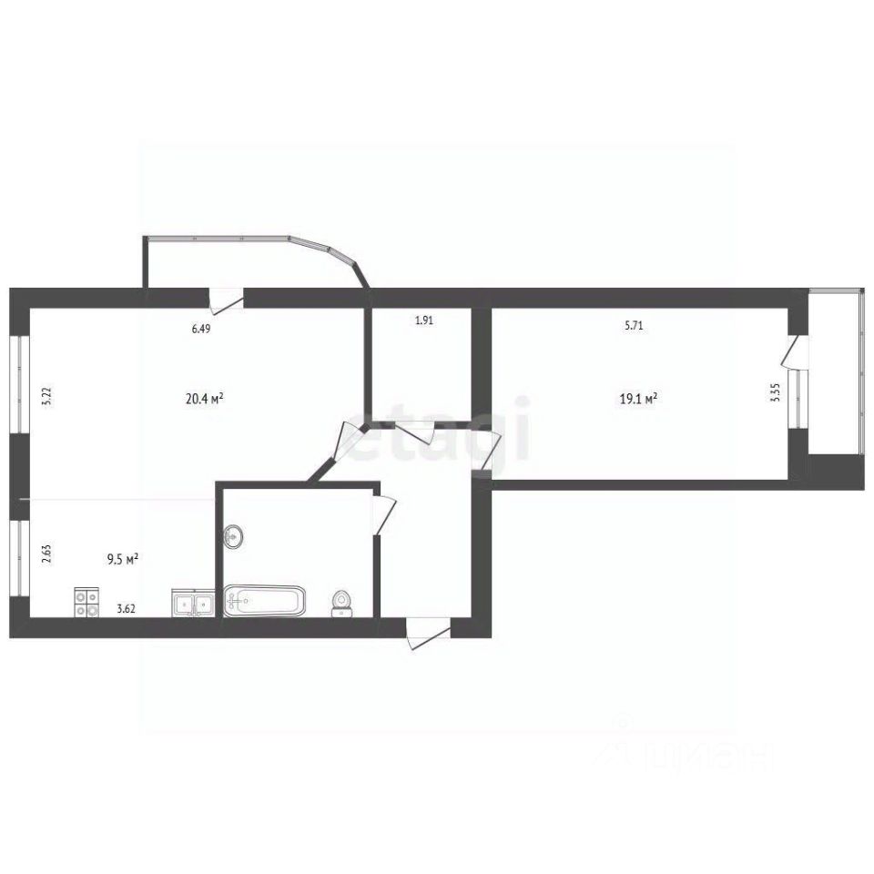 Две поистине огромные и равнозначные комнаты по 20,4 м² и 19,1 м². Идеальный баланс для просторной спальни и гостиной или для двух отдельных спален хозяев. Планировка "распашонка" дает свободу и ощущение простора.