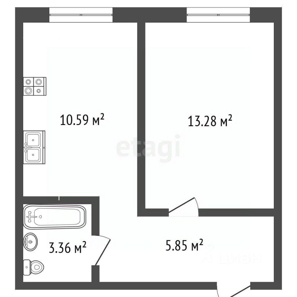 Здесь — большая кухня, изолированная комната, совмещённый санузел и окна во двор. Стены оштукатурены, отделка — под ваш вкус. Входная дверь металлическая (погнута, но закрывается), мебель и бытовая техника остаются — чтобы вам было проще начать.