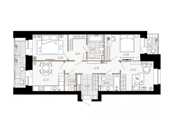 Продаётся 3-комнатная квартира в строящемся доме ( Этап 1), срок сдачи: II-кв. 2027, общей площадью 87.56 кв.м., на 2 этаже. Новый жилой комплекс "Есенин" от группы компаний "Кронекс" расположен по адресу: г. Северодвинск, по ул. Южная.