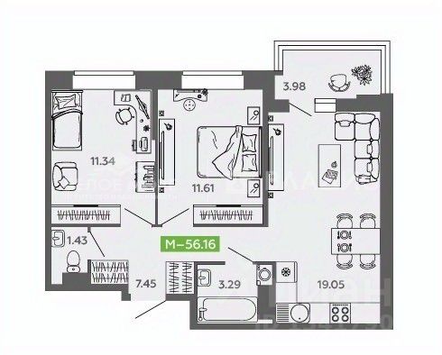 Продаётся евро-трёхкомнатная квартира площадью 56,16 квадратных метров в ЖК НЕО.