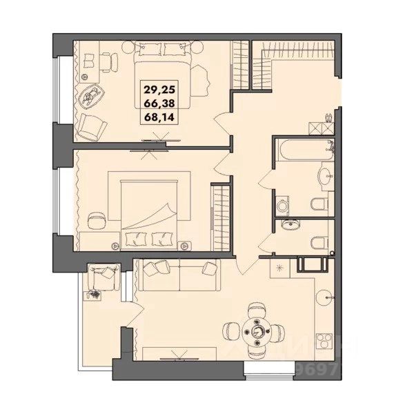 Общая площадь68,62 м²