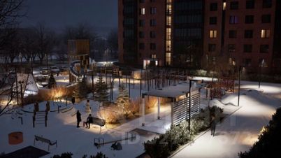 Особенной гордостью создателей проекта является авторская ландшафтная архитектура, включающая множество зон для отдыха детей и взрослых, собственный парк и поле для командных спортивных игр.