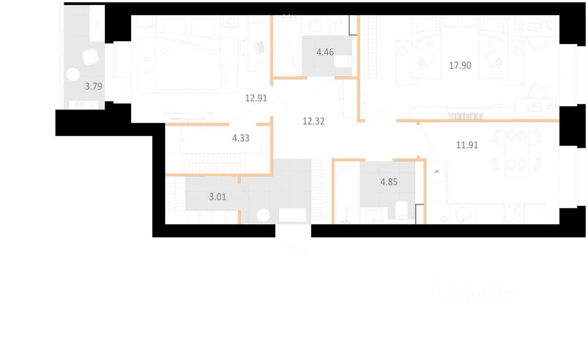 Площадь кухни11,9 м²