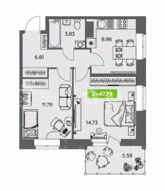Продается двухкомнатная квартира в жилом комплексе "Аквилонлайн".