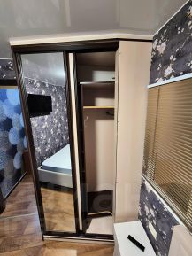 Спальня: кровать с подъемным механизмом и ортопедическим матрасом 160х200, шкаф-купе, тумба, телевизор.