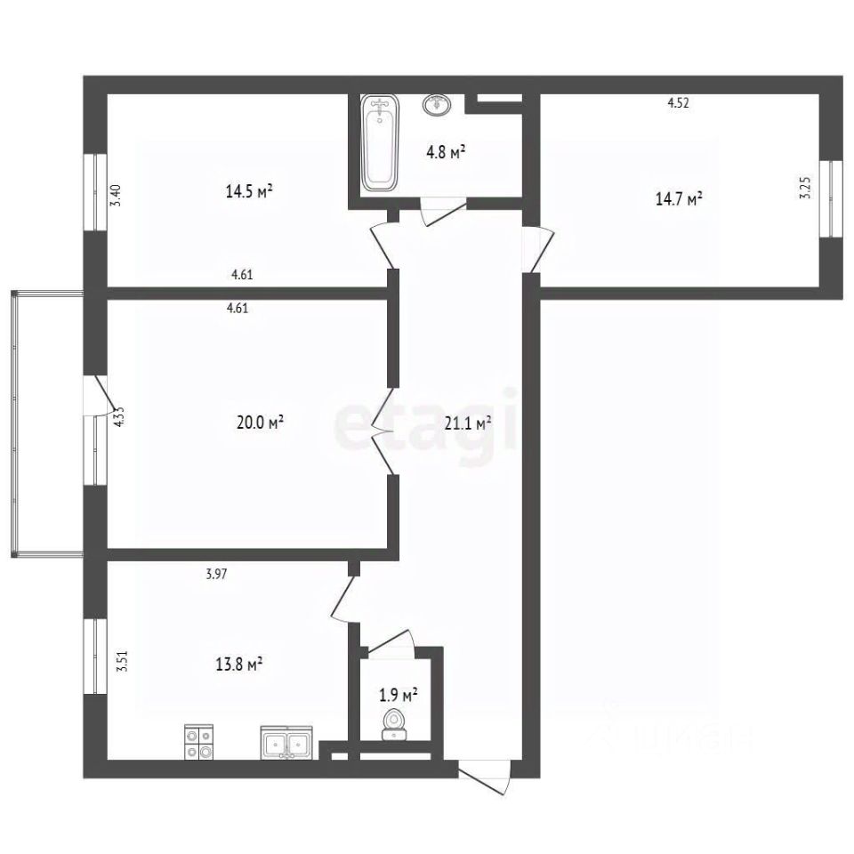 Площадь: 90,8 кв. м.;