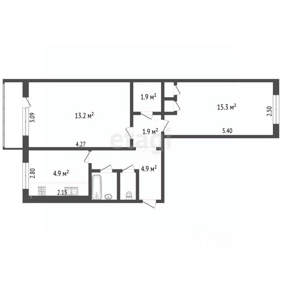 Любимая многими планировка-распашонка: 2 комнаты 13.2 м2 и 13.1 м2 выходят на разные стороны дома, в квартире всегда будет солнечно и светло. Санузел раздельный. Между комнатами вместительная гардеробная для ваших вещей.
