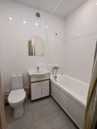 • В квартире сделан качественный евроремонт, имеется просторная лоджия с панорамным остеклением, установлены индивидуальные счётчики воды и электроэнергии. Новым владельцам остаётся кухонный гарнитур с электроплитой, обеденный стол и стулья.