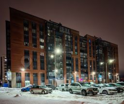 • Во дворе обустроены детская и спортивная площадки, предусмотрена бесплатная наземная парковка с большим количеством свободных мест.