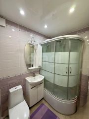 В квартире выполнен аккуратный ремонт: полы ламинат и кафель, натяжные потолки, установлены качественные стеклопакеты. Санузел совмещённый, в кафеле, установлены все счётчики. Квартира тёплая, светлая, чистая.