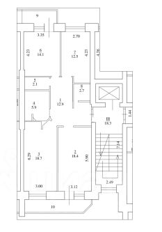 1. Продуманное пространство: Помимо просторных комнат (18,7, 18,4 и 14,1 м) вас приятно удивят шикарный холл 12,9 м и отдельная гардеробная 2,7 м.