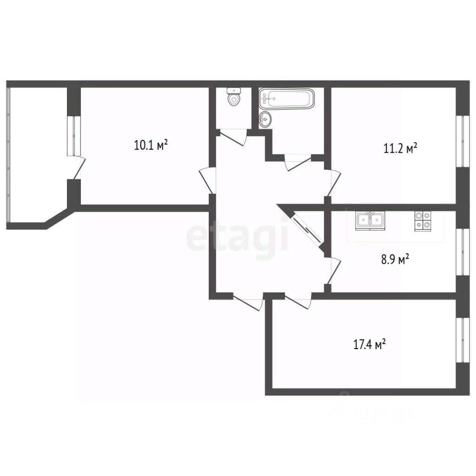 Комнаты: 10,1 /11,2 /17,4 м2