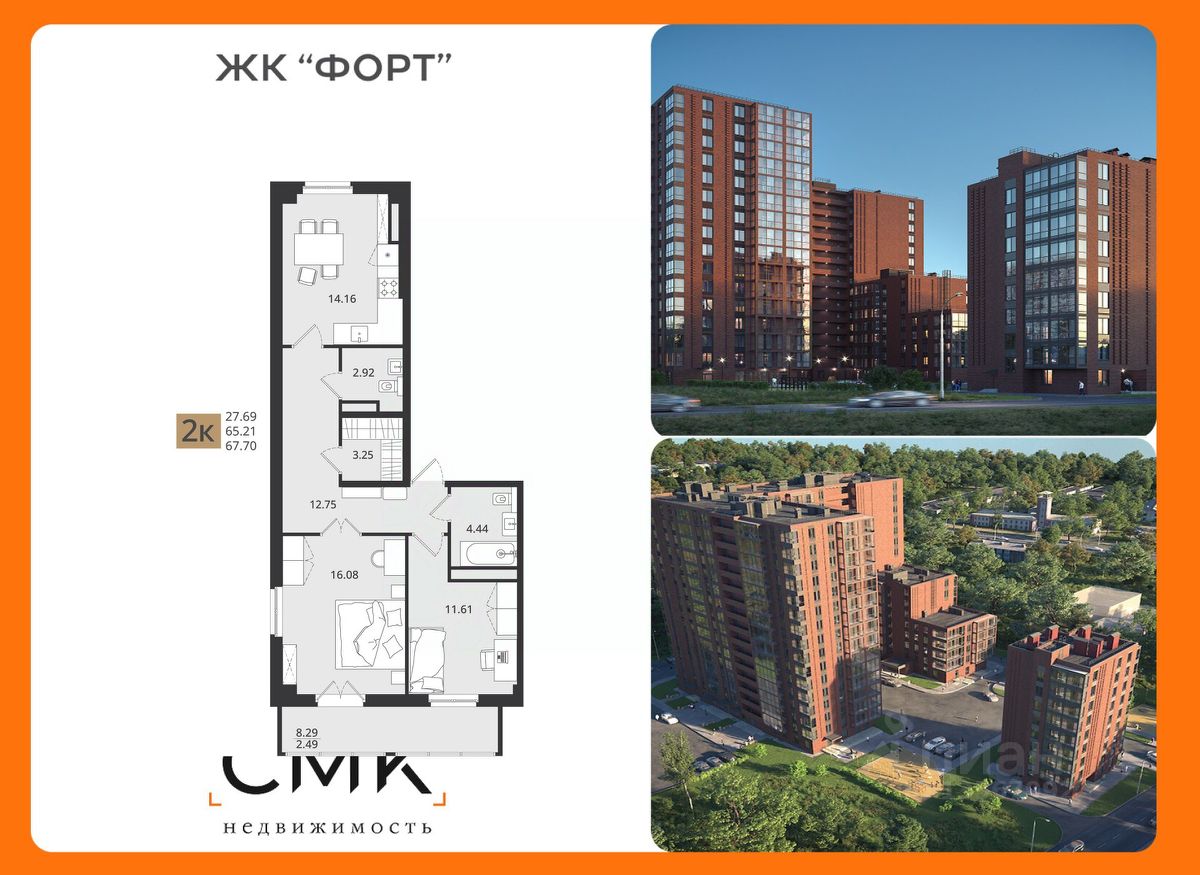 ЖК Форт это разновысотный комплекс класса комфорт в г. Архангельск. Жилой комплекс находится рядом с основными транспортными артериями города: Ленинградский проспект, Московский проспект, Набережная Северной Двины. В непосредственной близости находится остановка общественного транспорта, детский сад 174, школа 36, гимназия 27, студенческий городок САФУ, почтовое отделение, отделения банков, множество продуктовых и промтоварных магазинов, в том числе — крупный гипермаркет "Петровский". Преимущества жилого комплекса: Колясочные. В подъездах предусмотрены помещения для хранения колясок и велосипедов. Современные лифты. Уединенная дворовая территория. Встроенные коммерческие помещения на 1 этаже Подземный паркинг с доступом на лифте. Школа и детский сад во дворе. Панорамные виды на город и Северную Двину. Отделка холлов выполнена по уникальному дизайнерскому проекту с использованием высококачественных материалов. Входы/выходы из подъездов оборудованы видеодомофонами. Функциональные планировки. Отделка Grey Key. Увеличенная высота потолков до 3 метров добавит визуального простора в квартире. Двухтарифные электросчётчики позволят экономить на счетах за электроэнергию. Периметральная разводка системы отопления поквартирным учетом тепла. Современные приборы отопления уменьшенной высоты со встроенными терморегуляторами Светопрозрачные входные группы позволят солнечному свету свободно проникать в дом, а организованная безбарьерная среда обеспечит входы в подъезды и лифты с уровня земли. Озеленение территории: цветущие кустарники, газоны и цветники. Энергоэффективные стеклопакеты.