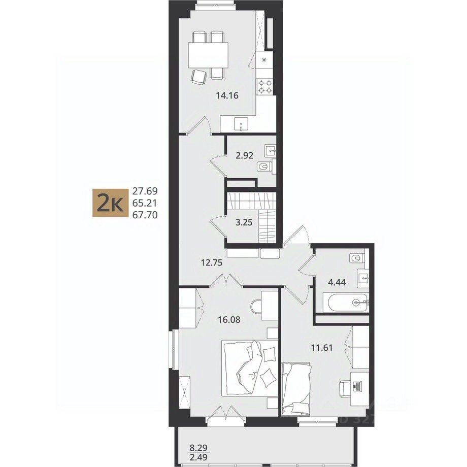 Продается 2-комн. квартира, 67,83 м²