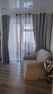 В квартире сделан ремонт, что позволит вам сразу заехать и чувствовать себя комфортно. Удобная планировка включает одну отдельную просторную комнату и компактную кухню. Напольное покрытие - ламинат, полы насыпные. Электрика новая. Потолки натяжные. Часть мебели остаётся (по договорённости). Санузел раздельный. Также имеются застеклённые балкон и 5-метровая лоджия на 2 окна, где можно обустроить зону отдыха или хранения. Окна выходят на улицу, тихое месторасположение. Во дворе открытая парковка, детская площадка. В шаговой доступности находятся ТРЦ Макси, Гипермаркет Лента, Лемана Про, Новосёл, Мега, Водоканал, Фитнес Хаус, Магнит, Пятёрочка, Средняя школа 36, Wildberries, Озон, аптека, детский сад 112 Гвоздичка. Удобная транспортная доступность позволяет быстро добраться до любых частей города, ближайшие остановки общественного транспорта - Ильинская, Октябрят.