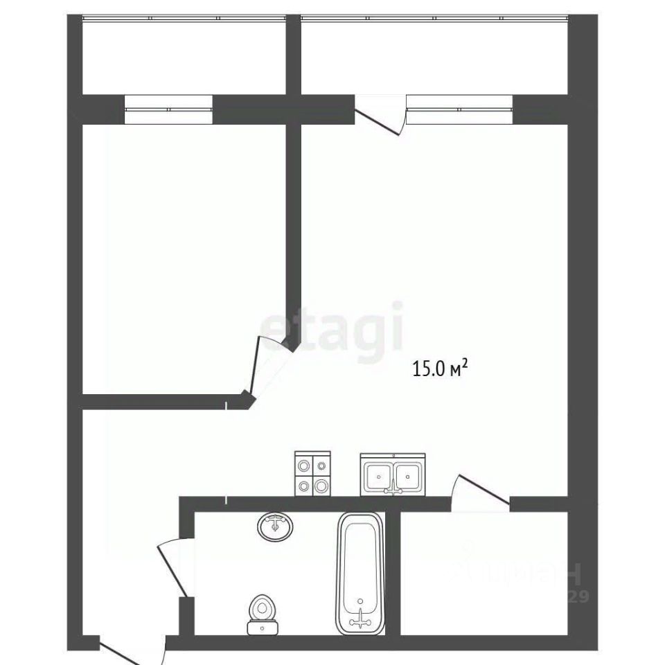 Общая площадь квартиры 40.3 м2. В квартире большая кухня-гостиная 15 м/кв. и компактная спальня или кабинет 9 м/кв., санузел совмещенный, большой балкон в два окна с замечательным видом на реку.