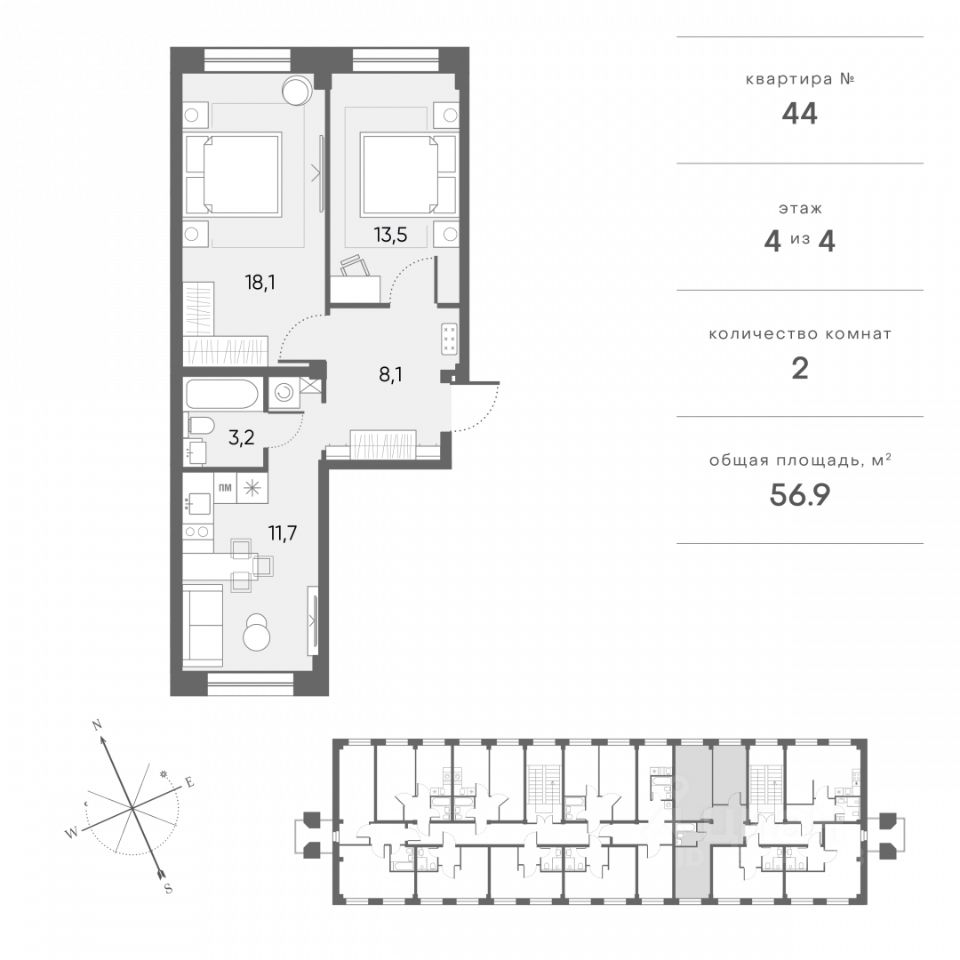 Общая площадь56,9 м²