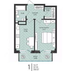 Общая площадь39,07 м²