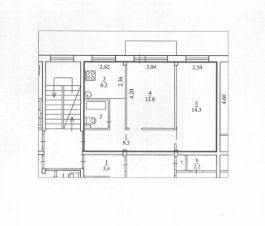 + общая площадь 45,6 кв.м., в том числе комнаты 14,3 и 12,8 кв.м., кухня 6,2 кв.м.;