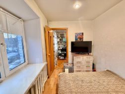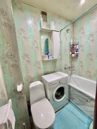 Общая площадь 25 м2. Две смежные комнаты, выделена зона кухни и прихожая. Совмещенный санузел. Окна выходят во двор, на западную сторону. Не угловая. Хорошее состояние. Установлены стеклопакеты, натяжной потолок с точечным светом, постелен линолеум. Частично остается мебель.