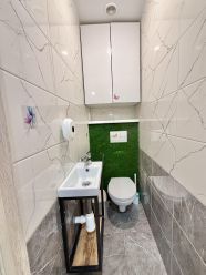 Состояние заезжай и живи! Сделан качественный ремонт в светлых тонах. Полностью поменяна проводка, перебраны полы, постелен линолеум, стены выровнены, натяжные потолки с точечным светом, установлены стеклопакеты. Санузел раздельный, облицован кафелем, трубы металлопластик. Счетчики свет/вода/газ.