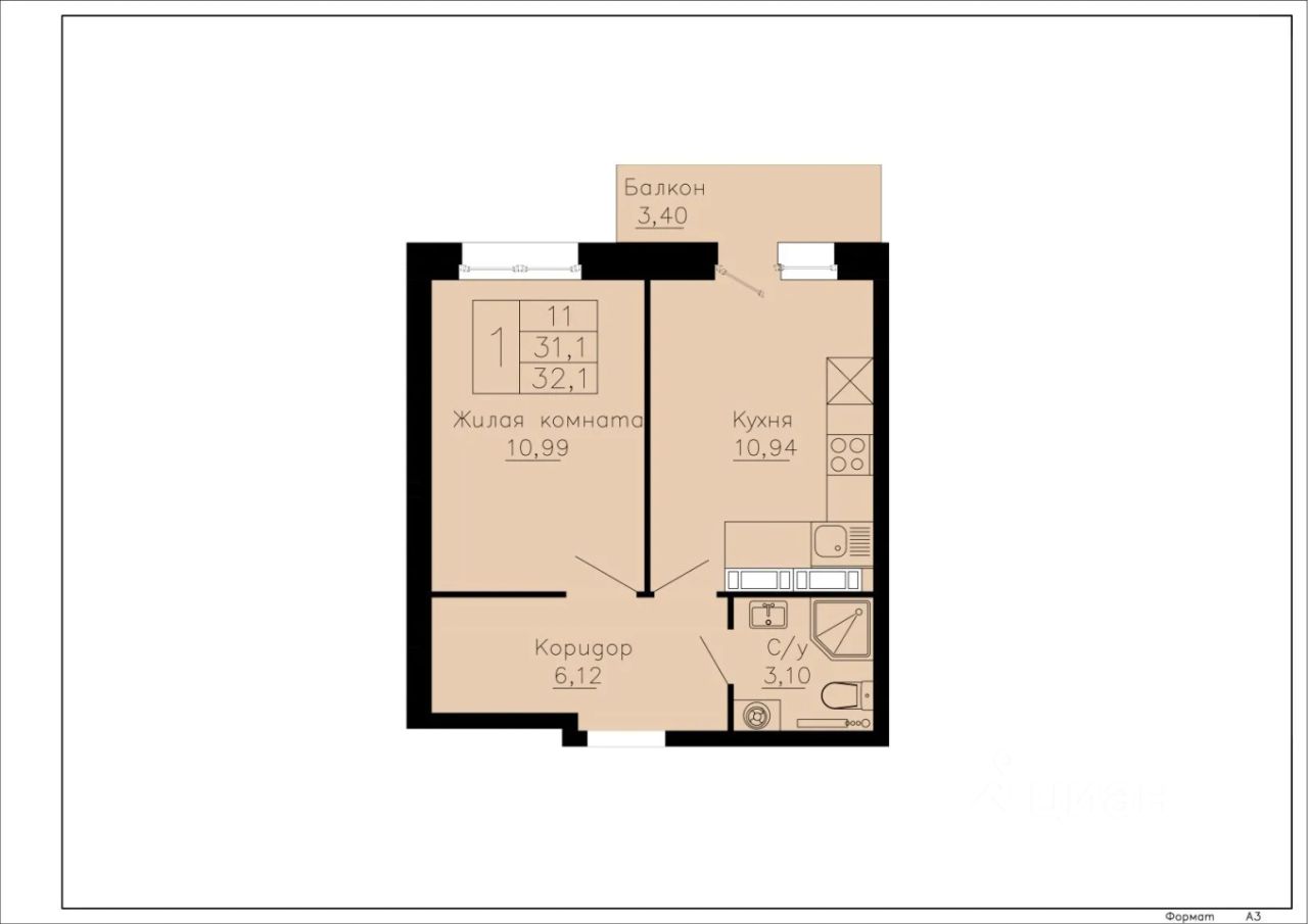 Общая площадь32,1 м²