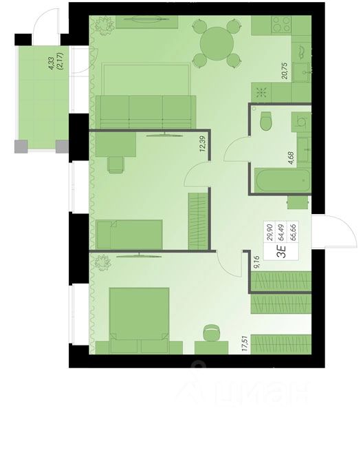 Внутри — комфортный микроклимат в любое время года. Современные радиаторы с терморегуляторами позволяют настраивать температуру под себя и не переплачивать за отопление. Панорамные окна с качественным профилем сохраняют тепло и защищают от шума, а также наполняют квартиру естественным светом.