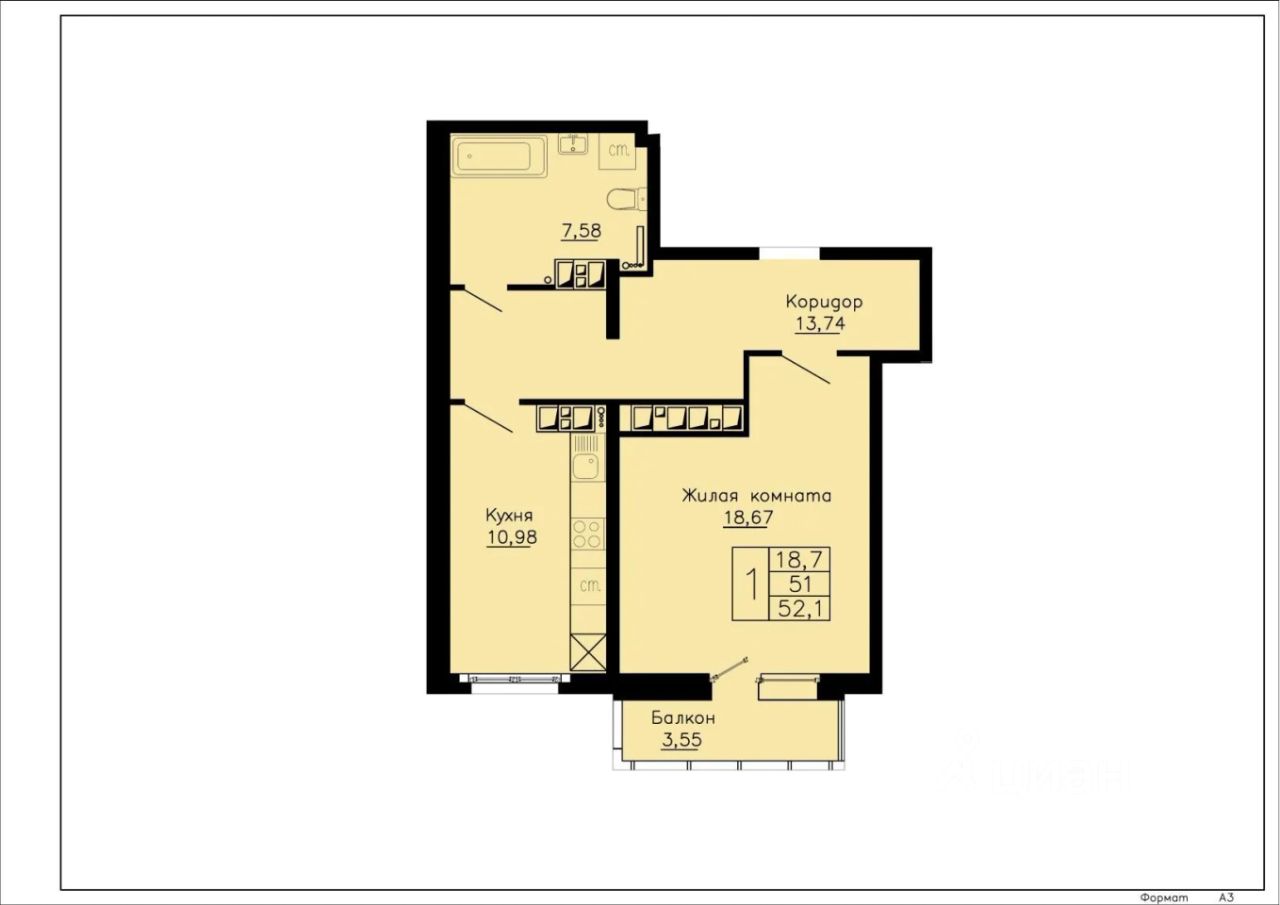 Общая площадь52,1 м²
