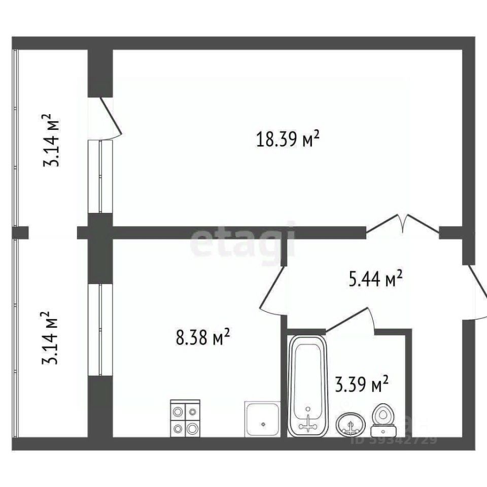 Комфортная планировка: Просторная кухня 8.38 м², жилая площадь 18.39 м², балкон, совмещённый санузел, высокие потолки 2.8 м.