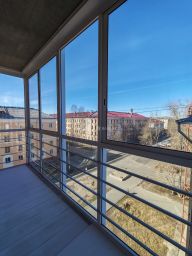 • Комнаты раздельные, окна выходят на три стороны света, что обеспечивает отличное естественное освещение. Есть большой балкон с панорамным остеклением.