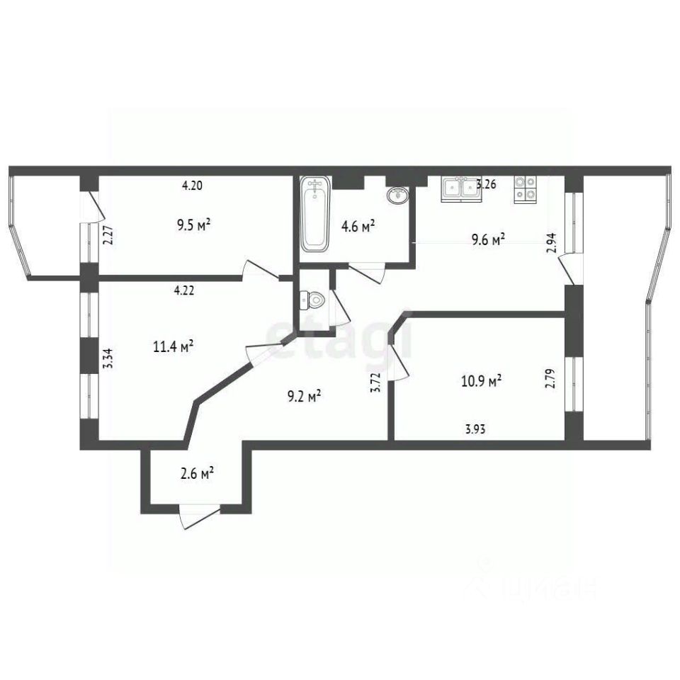 9,6 м²