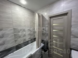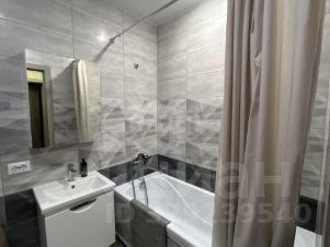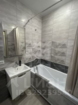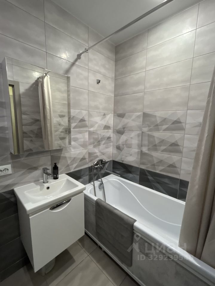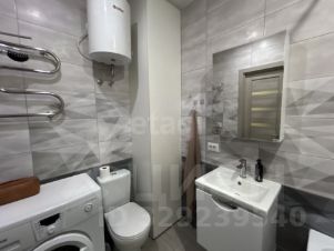 В квартире выполнен ремонт. Кухня оборудована, остаётся холодильник и стиральная машинка. Санузел совмещенный, оформлен в светлых тонах и оснащен современной сантехникой.