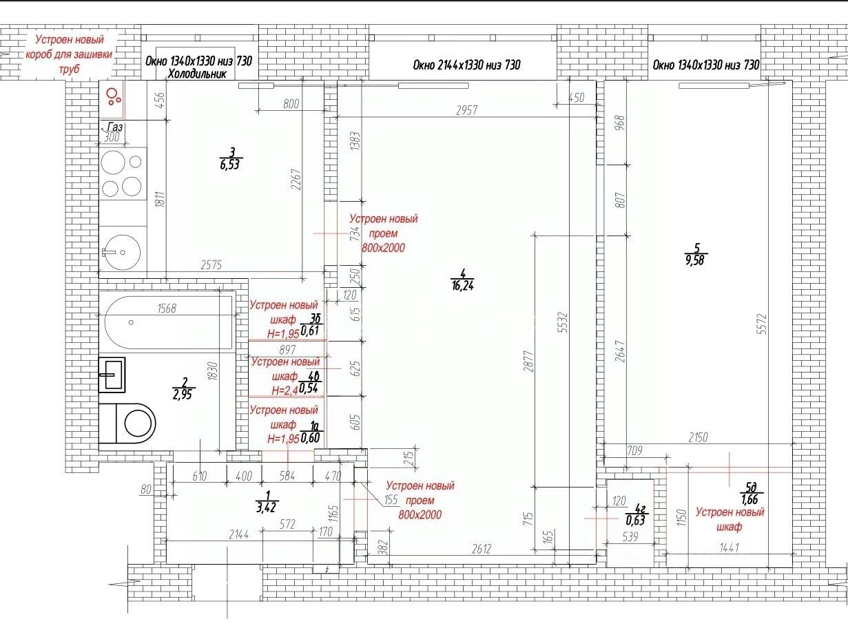 Сделана перепланировка, в квартире много встроенных шкафов для удобного хранения вещей.