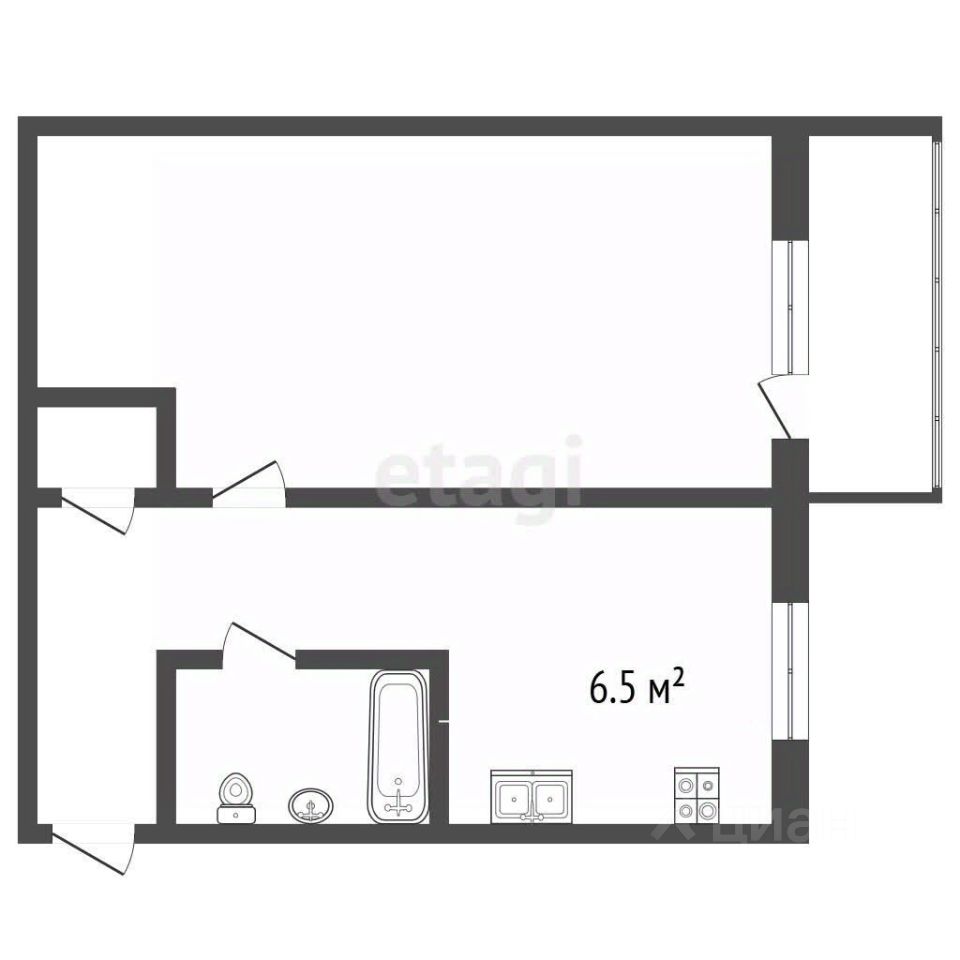 Большая жилая комната площадью 19 кв. м, застекленный балкон, площадь кухни 6,5 кв. м, совмещенный санузел.