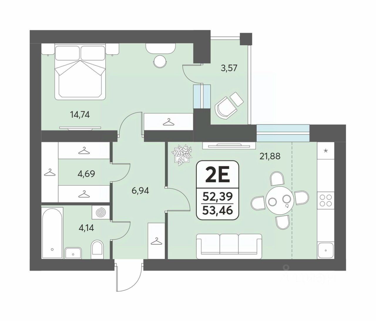 Продаётся 2-комнатная квартира в строящемся доме (поз.1 этап 2), срок сдачи: III-кв. 2027, общей площадью 53.46 кв.м., на 4 этаже. Новый жилой комплекс "Квартал мечты" от застройщика "Строй Центр" расположен по адресу: г. Северодвинск, Морской проспект.