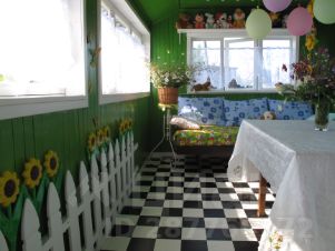 - Летний дом 37,4 м2 из бревна диаметром 28-30 см. Так же выполнен из зимнего бревна, окрашен финской краской. Место для сбора большой и дружной семьи.