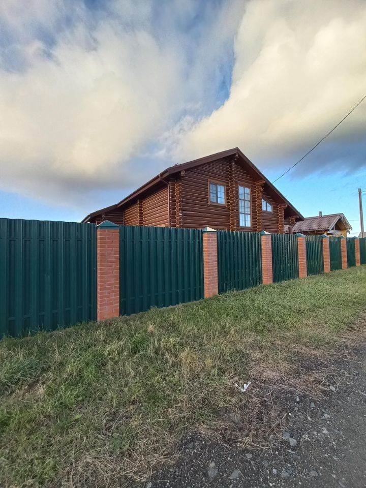 Забор по всему периметру участка с цемент. фундаментом. С лицевой стороны забор с выложенными кирпичом столбами на ленточном фундаменте 400*600мм и евроштакетником. Откатные ворота с электроприводом, датчиками и ПУ.
