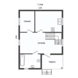 Площадь: 84 кв.м. (8х6 - 1 этаж, 8х4,5 - 2 этаж).