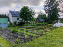 На территории находится баня в отличном состоянии, построенная из качественных материалов и готовая к использованию. Инфраструктура участка включает просторную беседку для отдыха, хозяйственный сарай для хранения инструментов и инвентаря, колодец с чистой питьевой водой и парник для выращивания овощей и зелени. Участок ровный, без избыточной влажности, что упрощает уход и расширяет возможности для ландшафтного дизайна или дополнительного строительства.