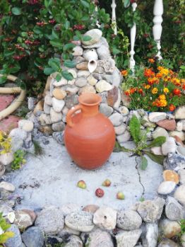 Свой мини водоём красиво оформлен.