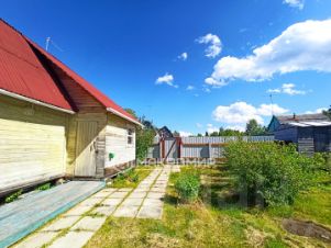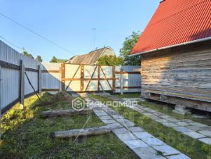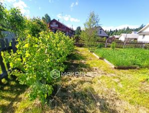 Участок ровный и сухой, грядки, газон, различные декоративные кустарники и растения, многолетние цветы. На участке также имеется хозяйственная постройка, дровяник, садовые качели, по периметру участка установлен основательный забор из профлиста на бетонных столбах, сделаны ворота, есть заезд на участок, для парковки двух авто.