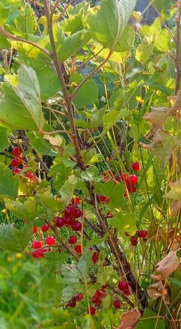 Ягодные кусты, красная и черная смородина, клубника, земляника, шиповник, малина.