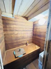 Вторая часть дома полностью заменена.Туалет внутри дома обеспечит удобство,а встроенная кухня и круглый стол-отличное место для семейных ужинов.