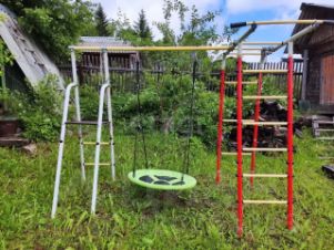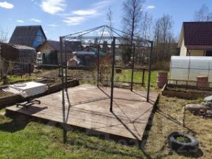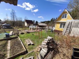 Участок полностью благоустроен: здесь есть баня, дровяник, хозяйственная постройка и просторная беседка для отдыха. Территория огорожена с двух сторон — профнастилом и деревянным забором. Участок граничит с лесом, что создает ощущение уединенности и дарит возможность собирать грибы и ягоды в сезон. Для любителей садоводства подготовлены грядки с клубникой и горохом, высажены плодовые кустарники — малина, смородина, а также вишня и яблоня.