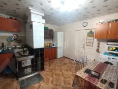 Жилая площадь: просторная кухня 14,7 кв.м, и две комнаты на разные стороны( 14,6 кв.м, и 14,9 кв.м). На полу постелен линолеум, стены обшиты вагонкой, в одной комнате раздвижная дверь. Отопление печное, печи в хорошем состоянии. Также, если морозы, есть радиатор отопления дополнительно. Свет везде проведен. Стены все ровные, полы теплые. В 2004 году было частично сделано укрепление под домом ж/б чушками, также укреплены венцы, сделана замена крыши на андулин. Снаружи дом окрашен.