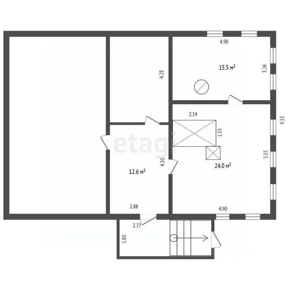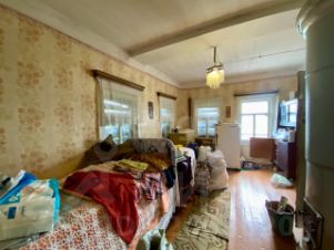 В доме кухня-гостиная с русской печью и комната с печью "буржуйка". Есть плита для быстрого приготовления пищи. Дом светлый, высокий, много окон. К дому пристроены просторные сени, в которых размещены: кладовая, дровяник, туалет. Установлены деревянные окна. Есть мансарда. Крыша покрыта шифером.