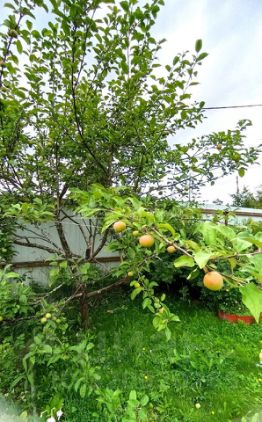 - 2 яблони, 5 кустов вишни, красная и черная смородина, крыжовник, малина. клубника, ирга, шиповник