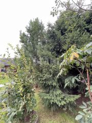 Участок сам по себе аккуратно ухожен, имеется газон, за которым постоянно ухаживают. Также имеются небольшие посадки для личного использования, где выращивается свежая зелень, морковь и другие овощи. На участке также растут декоративные еловые, пихтовые деревья и кедр, а также много других плодоносных растений.