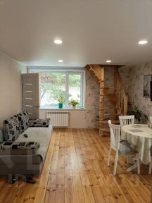 Третий этаж мансардный, тоже сделан свежий косметический ремонт, постелен линолеум, поклеены обои, сделан потолок.В мансарде остается вся мебель.